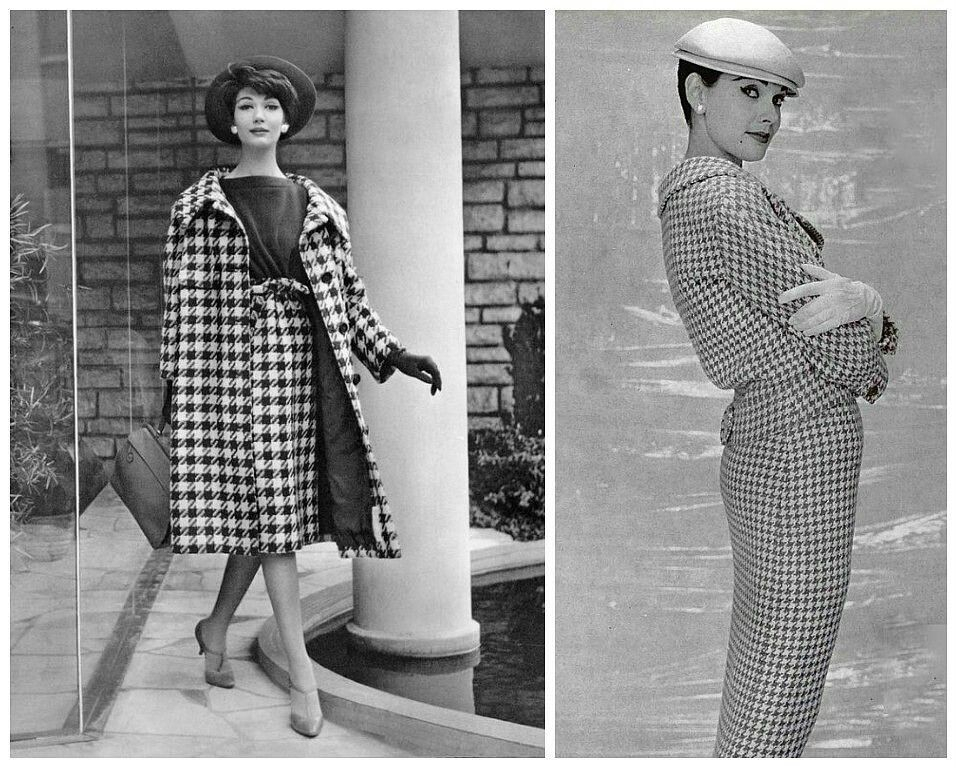 В 1950–60-х годах женщины стали постепенно внедрять «гусиную лапку» в повседневную моду. Она украшала костюмы для офиса, платья для прогулок и даже аксессуары. Этот принт ассоциировался с хорошим вкусом, сдержанностью и элегантностью. В то время он был особенно популярен среди женщин зрелого возраста, которые ценили классику.
