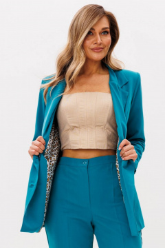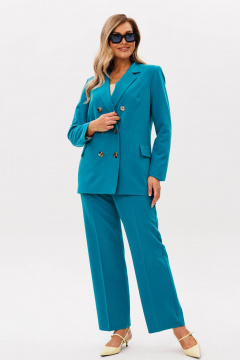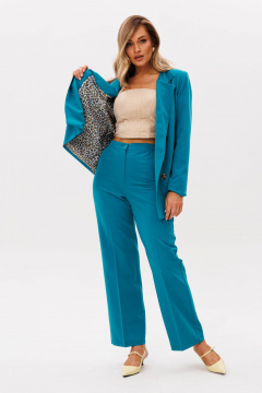 Прекрасный элегантный нарядный костюм свободного кроя из эластичной ткани. Советую брать на размер меньше. Пояс выполнен на базе эластичной резинки. Все отлично. Спасибо)