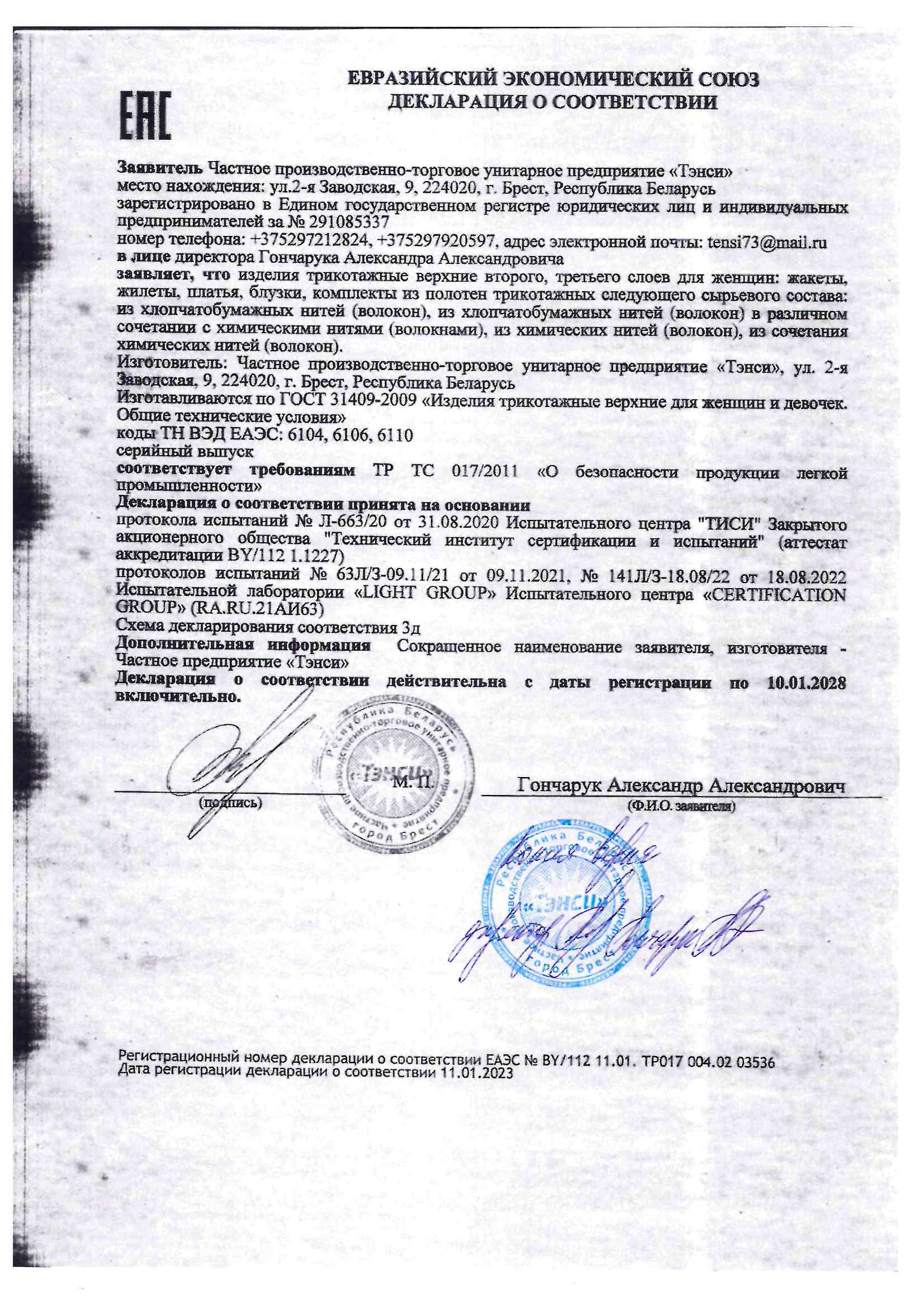 Каждой Декларации соответствия отведено место в специальном электронном реестре. По номеру декларации легко проверить правомерность и актуальность документа.
