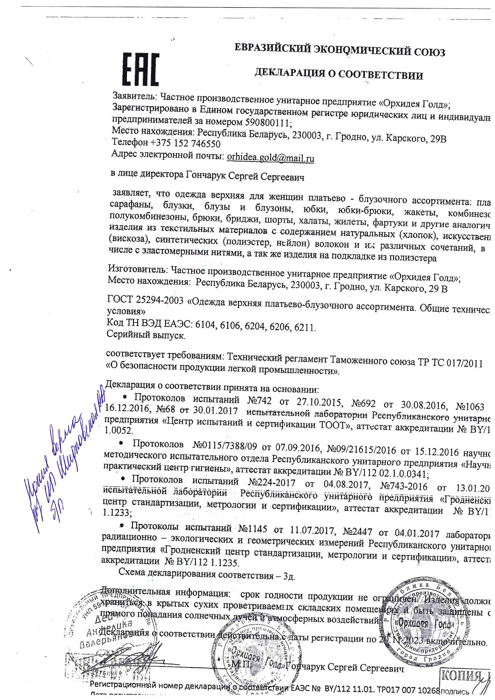 Каждой Декларации соответствия отведено место в специальном электронном реестре. По номеру декларации легко проверить правомерность и актуальность документа.
