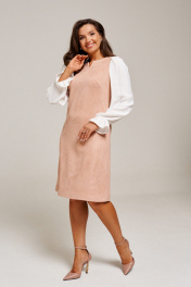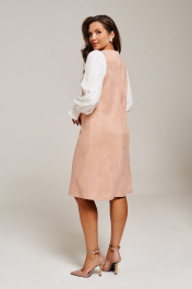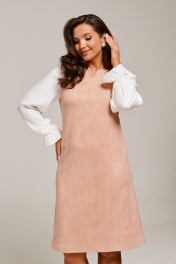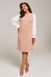Платье из искусственной замши приталенное с контрастными рукавами AltaModa 1016-1 бежевый