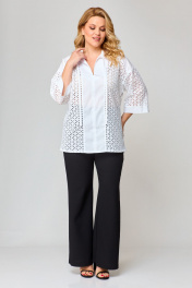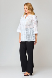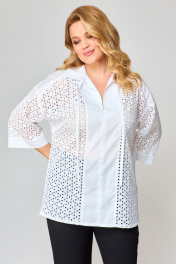 Блуза прямая летом из ткани “решелье” с воротником-стойкой VIPPRIMO 102 белый