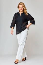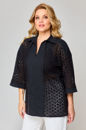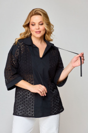 Блуза прямая летом из ткани “решелье” с воротником-стойкой VIPPRIMO 102 черный