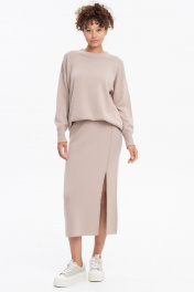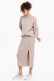 Бежевый трикотажный юбка с мягкими складками AREOLA 10679 мокка
