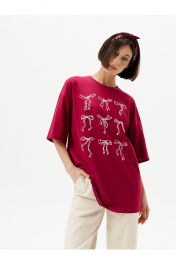 Погрузитесь в мир стиля и комфорта с женской оверсайз футболкой от бренда 10DENCY, украшенной уникальным принтом в виде бантиков. Эта футболка изготовлена из высококачественного хлопка, который обеспечивает приятные ощущения на коже и отлично подходит для повседневного ношения. Принт в виде бантиков добавляет оригинальности и игривости вашему образу, делая эту вещь идеальным выбором для тех, кто хочет выделиться из толпы. Просторный оверсайз крой обеспечивает свободу движений и комфорт, что делает футболку подходящей для разных ситуаций — от уютных прогулок до встреч с друзьями. Легко сочетайте её с джинсами, шортами или спортивными леггинсами, создавая стильные и модные аутфиты. Футболка от 10DENCY станет незаменимым элементом вашего гардероба, позволяя вам оставаться на пике моды без ущерба для комфорта. Обновите свой стиль с этой оригинальной футболкой, которая добавит нотку игривости и шика в ваш повседневный look.