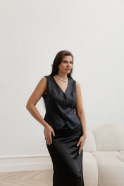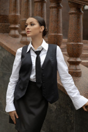 Эта элегантная жилетка классического кроя создана для тех, кто ценит стиль, безупречное качество и непревзойденный комфорт. Модель выполнена из эксклюзивной костюмной ткани — 100% австралийская мериносовая шерсть, а подкладка из натурального хлопка дарит ощущение роскошной мягкости и идеальную посадку в течение всего дня. Ткань тонкая, струящаяся с благородным отливом, приятная на ощупь. Декоративные пуговицы, обтянутые основной тканью, и V-образный вырез подчеркивают женственность и изящество силуэта. Модель гармонично дополняет любой гардероб и легко сочетается с вещами самых разных оттенков и фактур. Этот офисный женский жилет станет универсальным решением: его можно носить как в деловой среде, так и в повседневной жизни, сочетая с рубашками, пиджаками, юбками или брюками. Также он прекрасно смотрится как жилетка без рукавов в комплекте с костюмом, а также как жилетка школьная для старших классов. Благодаря тщательно проработанным лекалам и высокому качеству исполнения, изделие сохраняет форму и великолепный вид на протяжении долгого времени. Эксклюзивная ткань, тщательно проработанные лекала, качественное исполнение, оригинальная брендированная упаковка. Длина по спинке: (42-44-46-48)-47-48-49-50см. Талия (42-44-46-48)-80-84-88-102. Грудь (42-44-46-48)-90-94-98-102 см.