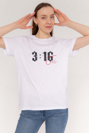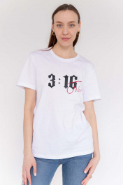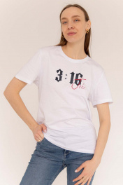 Джемпер женский с коротким рукавом классического кроя. Принт - флексография "John 3:16/ Иоанн 3:16". Ткань кулирная гладь , качество Пенье. - Только деликатная стирка 30 градусов - Не использовать отбеливатели - Изделие вывернуть наизнанку