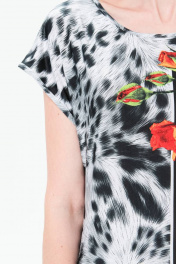 Легкое платье из вискозы с оригинальным принтом.Отлично садится по фигуре, комфортно в носке жарким летом.Отличный вариант на каждый день. Тип рукава- короткий. Вырез горловины - округлый.Длина изделия 112 см