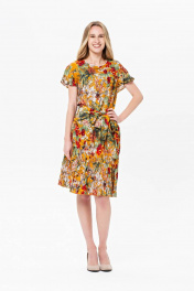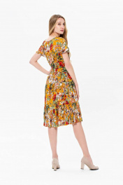 Платье летнее из вискозы с цветочным принтом и поясом BirizModa 21С0018 горчичный - фото 1