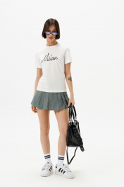 Обтягивающая футболка с принтом "Milan" от нашего бренда 10DENCY - это идеальный выбор для современной модницы, которая ценит стиль и комфорт. Модная, удобная и практичная вещь. Стильная базовая футболка является незаменимой частью гардероба всех девушек и женщин. Наша укороченная футболка в обтяжку, как вторая кожа, тянется и имеет облегающий крой и утягивающий эффект, благодаря чему подчеркивает женственные очертания и прекрасно поддерживает бюст даже без лифа. Футболка с короткими рукавами доступна в размерном ряде, который соответствует базовым российским размерам. Изготовлена из мягкой вискозы премиум качества с добавлением лайкры, благодаря этому изделие обладает повышенной износостойкостью: не вытягивается и не деформируется. Базовая женская футболка с принтом "Milan" привлечет внимание окружающих, а комфортный крой и мягкий материал позволят использовать ее на повседневную носку. Обтяги...