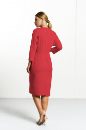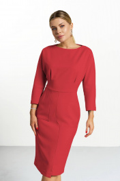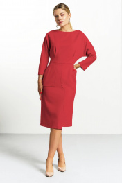 Платье полуприлегающего силуэта с цельнокроеным рукавом. Горловина «лодочка» на обтачке! Платье отрезное по линии талии . По переду боковые карманы- — отрезной и накладной. На лифе по переду складки , а по спинке вытачки по талии. Низ платья — ассиметричный!. Спинка разрезная с застежкой на потайную тесьму «молния».