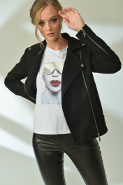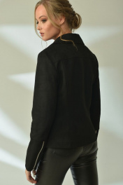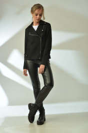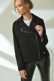 Куртка прямого силуэта с асимметричной застёжкой на металлическую тесьму "молния". Перед с рельефами и карманами. Спинка с кокеткой и рельефами. Воротник пиджачного типа. Рукав двухшовный с подрезом и металлической застёжкой "молния" в локтевом шве. В нижней части бокового шва декоративные паты с кнопками. Куртка на подкладке. 42 р.: ОГ=92 см, объём по низу=96 см. 44 р.: ОГ=96 см, объём по низу=96 см. 46 р.: ОГ=100 см, объём по низу=100 см. Длина в этих размерах=60 см. 48 р.: ОГ=104 см, объём по низу=104 см. 50 р.: ОГ=108 см, объём по низу=108 см. 52 р.: ОГ=112 см, объём по низу=112 см. Длина в этих размерах=62 см. 54 р.: ОГ=116 см, объём по низу=116 см. 56 р.: ОГ=120 см, объём по низу=120 см. 58 р.: ОГ=124 см, объём по низу=124 см. 60 р.: ОГ=132 см, объём по низу=132 см. Длина в этих размерах=64 см. Длина рукава во всех размерах=61 см.