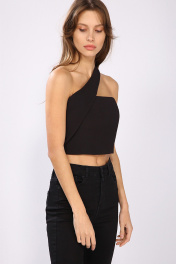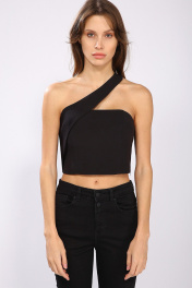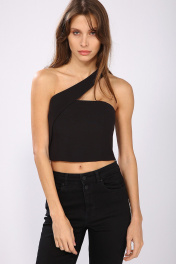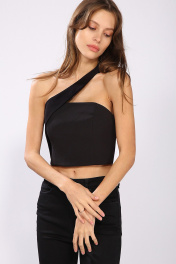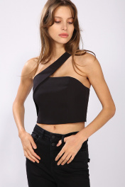 Черный вечерний бьюти-кроп-топ с открытым плечом TANYA NOVACHUK 6.003/BK