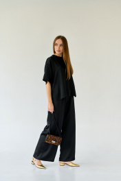 Черный оверсайз костюм блузы и палаццо из струящейся ткани Мастер Мод 756ас чёрный