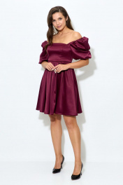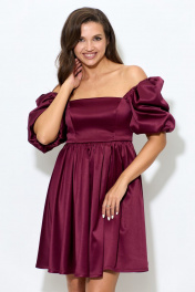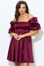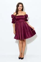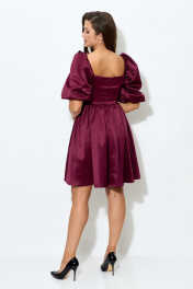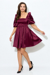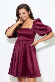 Платье из атласа с короткими рукавами и ремнем Abbi 1007 спелая_вишня