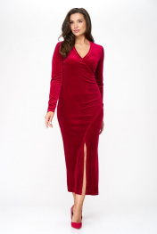 Элегантное вечернее женское платье прилегающего силуэта, материал стрейч-бархат, V-образный вырез. Узкий втачной рукав, удлиненный, драпируется на запястье. Имитация запаха по переду. По центру переда разрез выше линии колена. По спинке средний шов, обеспечивает прилегание по линии талии. Линия горловины и подреза обработана бейкой. Простой уход – это деликатная стирка при 40-50 градусах без отбеливателей и отжима с легкой глажкой, и сушкой в естественных условиях. Платье станет отличным дополнением в вашем гардеробе. Рост фотомодели на изображениях – 170 см., размер фотомодели – 48. Замеры: Рост фотомодели на изображениях – 170 см., размер фотомодели – 48. ОГ – объем груди; ОТ – объем талии; ОБ – объем бедер; ДИ – длина изделия; ДР – длина рукава. Размер 46 ОГ – 92; ОТ – 82; ОБ – 96; ДИ – 132; ДР – 63. Размер 48 ОГ – 96; ОТ – 86; ОБ – 100; ДИ – 132; ДР – 64. Размер 50 ОГ – 100; ОТ – 90; ОБ – 104; ДИ – 132; ДР – 64. Размер 52 ОГ – 104; ОТ – 94; ОБ – 108; ДИ – 134; ДР – 65. Размер 54 ОГ – 108; ОТ – 98; ОБ – 112; ДИ – 134; ДР – 65. Размер 56 ОГ – 112; ОТ – 102; ОБ – 116; ДИ – 135; ДР – 65. Размер 58 ОГ – 116; ОТ – 106; ОБ – 120; ДИ – 136; ДР – 65. Размер 60 ОГ – 120; ОТ – 110; ОБ – 124; ДИ – 136; ДР – 66.