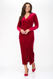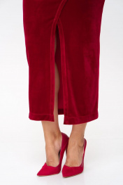 Красное платье-футляр из стрейч-бархата с V-образным вырезом Abbi 1014 спелая-вишня