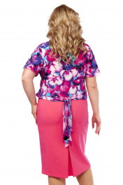 Погрузитесь в мир элегантности с нашим нарядным платьем полуприталенного силуэта, которое идеально подчеркнет вашу индивидуальность, которое изготовлено из высококачественных эластичных трикотажных полотен. Это платье обеспечит комфорт и свободу движений. Яркий цветочный принт на верхней части с изящными спущенными короткими рукавами и округлой горловиной добавляет нотку романтики и свежести в ваш образ. Платье нарядное, отрезное по линии талии, без подкладки. Особое внимание привлекает двойной лиф, который плавно переходит в стильную завязку-бант на середине спинки, создавая эффектный силуэт. Закрытая шлица по низу спинки придает платью утонченности и делает его идеальным выбором для особых случаев. Это платье больших размеров станет вашим верным спутником на любом торжестве, подчеркивая красоту и уверенность в себе. Выберите стиль и комфорт — выберите наше платье! Добавьте это платье в свой гардероб и наслаждайтесь его элегантностью и универсальностью в любых ситуациях! Не забудьте обратить внимание на точные замеры готовых изделий в описании и фототаблице, чтобы выбрать ваш размер. В то же время стоит придерживаться и стандартных размерных таблиц для женской одежды подобной категории, поскольку при конструировании и изготовлении женской одежды наши специалисты руководствуются стандартами ГОСТ. Наша фотомодель ростом 170 см демонстрирует платье 56 размера, что поможет вам лучше представить, как она будет выглядеть на вас. Если у вас есть сомнения по выбору размера, обращаться к нам — мы с радостью поможем подобрать идеальный вариант! Стирать трикотаж лучше вручную «отжимающими» движениями в теплой мягкой воде с применением специальных моющих средств для шерсти и деликатных тканей. Если вы не приемлите такие средства, пользуйтесь старым проверенным способом — стирайте трикотажные вещи вручную, растворив в воде немного шампуня. Фактические замеры изделий (в готовом виде), в которых: ОГ – обхват груди; ОТ – обхват талии; ОБ – обхват бедер; ДИ – длина изделий (по спинке от выреза горловины по центру до низа); ДР – длина рукава (от выреза горловины (спущенный рукав) до края рукава); ОР – обхват рукава в пройме (в предплечье в самом широком месте). Фотомодель на фотографиях – ростом 170 сантиметра, размер 56. Размер платья на фотомодели – 56. Размер 54 ОГ – 108; ОТ – 98; ОБ – 114; ДИ – 106; ДР – 34; ОР – 46 Размер 56 ОГ – 112; ОТ – 102; ОБ – 118; ДИ – 106; ДР – 34; ОР – 46 Размер 58 ОГ – 116; ОТ – 106; ОБ – 122; ДИ – 106; ДР – 34; ОР – 46 Размер 60 ОГ – 120; ОТ – 110; ОБ – 126; ДИ – 106; ДР – 34; ОР – 46