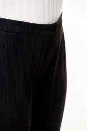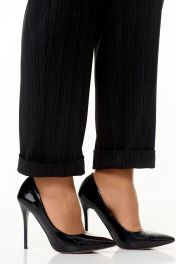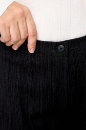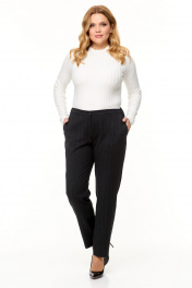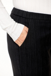 Брюки женские офисные, зауженные к низу. По передним половинкам, в боковых швах, наклонные функциональные карманы. Пояс притачной с резинкой. Застежка на петлю и пуговицу. Ткань немного принтована вертикальной полоской тех же тонов ткани, что придает особенность этой модели. Эластичный пояс позволяет подобрать размер именно для вашей фигуры даже при незначительном наличии особенностей талии. При этом нет необходимости в использовании ремней или пояса. Универсальный темный тон великолепно подойдет для повседневного использования брюк. Из можно одеть как в офис, на работу, либо для вечернего выхода. Низ в брюках создан так, чтобы их можно было подвернуть в манжет по желанию. Фотомодель на съемке ростом 170 см., размер фотомодели – 48. Фактические замеры готовых изделий, где: Рост фотомодели на изображениях – 170 см. Размер фотомодели – 48. ОТ – обхват по талии (резинка собрана/растянута); ОБ – обхват по бедрам; ДИ – длина изделия. Размер 46 ОТ – 74/90; ОБ – 104; ДИ – 99 Размер 48 ОТ – 78/94; ОБ – 108; ДИ – 99 Размер 50 ОТ – 82/98; ОБ – 112; ДИ – 100