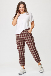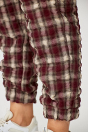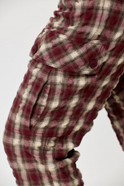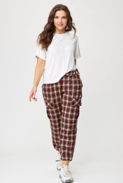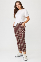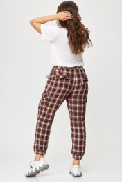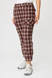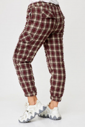 Брюки женские карго без подкладки с функциональными карманами. Пояс со шлевками на резинке. Шерсть в составе ткани – отличный вариант на межсезонье. Карманы в боковых швах. Накладные карманы на боковых швах. Карманы на задних половинках с застежкой на две петли и пуговицы. Все карманы функциональны. Низ брюк – с манжетом, собранным в резинку. Ткань крэш – жатая ткань. Её особенность — долговечные складки, морщины и заломы, которые создаются на ткани благодаря длительному воздействию пресса. Ткань-крэш удобна в использовании — она легко стирается и не требует глажки. Брюки-карго представлены в двух тонах – бордо и графит. Принт – клетка. Благодаря натуральным волокнам в составе ткани и ее особенностям не требует особенностей при уходе. Стирка как машинная, так и ручная. Температура при стирке 40-60 градусов. На изображениях фотомодель ростом 173 см. Размер фотомодели – 48. Замеры: Размер фотомодели – 173 см. Размер фотомодели – 48. ОТ-обхват талии (резинка собрана/растянута); ОБ-обхват бедер; ДИ-длина изделия. Размер 48. ОТ – 68/88; ОБ – 104; ДИ – 98 Размер 50. ОТ – 72/92; ОБ – 108; ДИ – 98 Размер 52. ОТ – 76/96; ОБ – 112; ДИ – 98