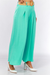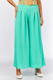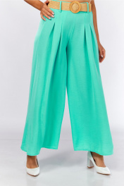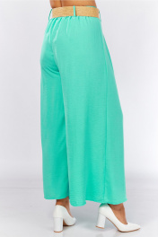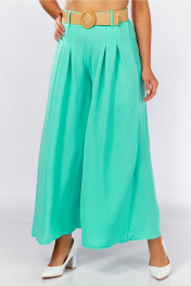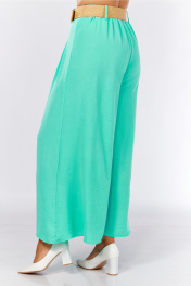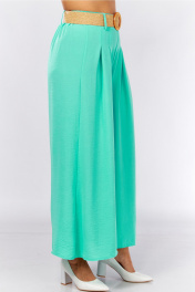 Брюки-палаццо светло-бирюзового цвета: Итальянский шарм для яркого лета. Брюки на размер 46–54. Брюки-палаццо светло-бирюзового оттенка с высокой посадкой — это воплощение итальянской утонченности и летней свежести. Сшиты из премиальной итальянской ткани (вискоза и полиэстер), они струятся, словно морская волна, даря легкость и мягкость каждому движению. Почему они для вас? • Итальянский стиль: Расклешенный крой, вдохновленный трендами итальянской моды 2025 года, создает элегантный силуэт и маскирует любые несовершенства. • Универсальность размера: Эластичный втачной пояс (от 68 до 90 см) и свободный оверсайз-крой (обхват бедер до 140 см) идеально садятся на фигуры от 46 до 54 размера, подчеркивая индивидуальность. • Изысканный акцент: Итальянский плетеный ремень LIMENO добавляет нотку богемной изысканности. • Идеальная длина: Внутренний шов — 70 см, внешний — 102 см. Подходят для роста 164–175 см. Как смотрятся? На фотомодели (рост 173 см, обхват груди — 100 см, талии — 79 см, бедер — 115 см) светло-бирюзовые брюки выглядят восхитительно: высокая посадка удлиняет ноги, а свободный крой мягко обволакивает фигуру, создавая утонченный и воздушный образ. Нежный бирюзовый оттенок добавляет свежести и летнего настроения. Как стилизовать? Эти брюки — жемчужина летнего гардероба. Носите с белыми блузами для романтичных встреч, яркими топами для прогулок или строгими жакетами для деловых образов. Светло-бирюзовый цвет прекрасно сочетается с пастельными и нейтральными тонами, подчеркивая ваш вкус. Погрузитесь в итальянскую эстетику с брюками-палаццо, которые созданы для женщин, любящих комфорт и стиль! Фактические замеры (размер 46–54): • Обхват талии: 68–90 см (резинка собрана/растянута) • Обхват бедер: 140 см • Длина изделия: 70 см (внутренний шов) / 102 см (наружный шов)