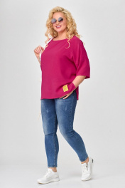 Эта блуза обладает всеми характеристиками стиля бохо: свободный силуэт, спущенная линия плеча и заниженная пройма, овальный вырез, рукав укороченный чуть за линию локтя и декоративные нашивки по переду. В боковых швах небольшие разрезы, по переду настрочены две декоративные нашивки, сверху справа и по низу с левой стороны, по низу переда и спинки ,рядом с разрезом расположены люверсы, через которые протянут декоративный шнур, вырез овальной формы, близкий к лодочке. Эта блуза-рубашка прекрасно сочетается с широкими брюками или джинсами и сандалиями в городском стиле. Если же вы ищете решение на отдых, всегда можно надеть ее на летнюю юбку и шпильки для соблазнительных вечеринок или на кеды и широкие шорты для прогулок по пляжу или в парке. Также блуза-рубашка будет идеальным выбором для женщин, которые ищут комфорт в жаркие дни. Без выреза, она позволит коже дышать и не вызовет дискомфорт. Ткань жатка будет превосходно пропускать воздух, так что вы будете носить ее с удовольствием в течение всего летнего сезона. Не бойтесь экспериментов! Отлично сочетается с джинсами как на фото или моделями нашего бренда как Abbi 2003 Выберите нашу женскую блузу-рубашку в стиле бохо и добавьте удобства и стиля в свой летний гардероб! Представляем вам стильную блузку женскую нарядную цвета фуксия, которая идеально подойдет для офисной и праздничной одежды. Она выполнена из ткани жатка, имеет широкие манжеты на рукавах, дополненные пуговицами, и округлый вырез горловины. Блузка женская рубашка с оверсайз кроем, что обеспечивает комфорт и свободу движений. Она отлично сидит на любом типе фигуры и будет отлично сочетаться с брюками или юбкой. Сочетание яркого цвета и необычного кроя делает эту блузку женской неповторимой и привлекательной. Блузка фуксия женская - идеальный вариант для тех, кто хочет выделиться из толпы и при этом чувствовать себя комфортно и уверенно в своем образе. Она привнесет яркость и романтику в ваш гардероб, подчеркнет вашу индивидуальность и создаст неповторимый образ. Замеры: ОГ-обхват груди; ОТ-обхват талии; ДИ- длина изделия; ДР-длина рукава Размер 50. ОГ-124; ОТ-118; ДИ-70; ДР-19. Размер 52. ОГ-128; ОТ-122; ДИ-70; ДР-19. Размер 54. ОГ-132; ОТ-126; ДИ-70; ДР-19. Размер 56. ОГ-136; ОТ-130; ДИ-70; ДР-19. Размер 58. ОГ-140; ОТ-134; ДИ-70; ДР-19. Размер 60. ОГ-144; ОТ-138; ДИ-70; ДР-19.