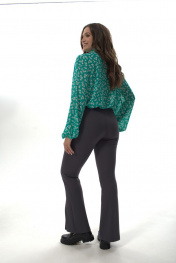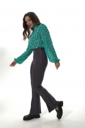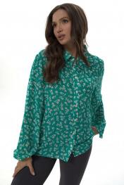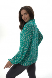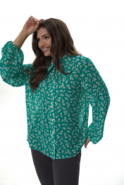 Рубашка прямого силуэта с воротником на стойке, отрезная планка по переду, с застежкой на петли-пуговицы. Рукав втачной прямой, объемный, свободный, по низу собран на резинку. Дышащая легкая воздушная ткань, не просвечивается. Простая в уходе и стирке. Рубашка представлена в двух тканях с разными принтами. «Силка» представлена с принтом «леопард». «Креп-шифон» представлен в зеленых тонах с принтом «цветы». При фотосьемке в образе мы использовали модели нашего бренда. Фотомодель ростом 173 см, размер 50. Фактические замеры готовых изделий, где: Рост фотомодели на изображениях – 173 см. Размер фотомодели – 48. ОГ – обхват по груди; ОТ – обхват по талии; ОБ – обхват по бедрам; ДИ – длина изделия; ДР – длина рукава. Размер 50 ОГ – 104; ОТ – 104; ОБ – 106; ДИ – 68; ДР – 61 Размер 52 ОГ – 108; ОТ – 108; ОБ – 110; ДИ – 68; ДР – 61 Размер 54 ОГ – 112; ОТ – 112; ОБ – 114; ДИ – 68; ДР – 61