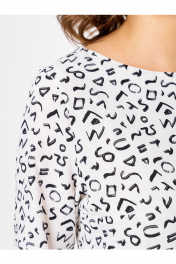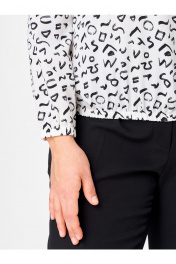 Элегантность в каждом движении Почувствуйте легкость и комфорт с блузой от белорусского бренда Abbi. Модель 4027 — это идеальное сочетание лаконичного кроя и эффектного авторского принта (напоминающего абстрактные буквы или анималистичный мотив). Она создана для женщин, которые ценят практичность, не жертвуя при этом стилем. Почему эта блуза станет хитом продаж: • Дышащая премиум-ткань: В основе — 92% натуральной вискозы. Ткань струящаяся, гладкая и упругая. Она не просвечивает, отлично пропускает воздух и практически не мнется — ваш образ останется безупречным весь день. • Идеальный силуэт Plus Size: Прямой крой с вырезом «лодочка» (как спереди, так и на спинке) и грамотно расположенными нагрудными вытачками мягко корректирует фигуру. Резинка по низу изделия и на рукавах позволяет регулировать посадку, создавая аккуратный напуск. • Универсальность 365: Белый фон с ярким черно-белым принтом делает блузу базовой, но не скучной. Она отлично смотрится в классическом образе с черными брюками (как на фото), в офисе под жакет, на прогулке с джинсами или на праздничном ужине. Подходит для любого сезона. • Безупречные лекала: Цельнокроеный рукав обеспечивает свободу движений, а отсутствие лишних застежек делает модель максимально удобной в носке.