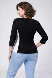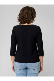 Главное преимущество этой модели — высокоэластичный мягкий трикотаж на основе вискозы. Ткань обладает исключительной мягкостью, она очень приятна на ощупь и дарит ощущение «второй кожи». Благодаря высокому содержанию спандекса (10%) материал невероятно эластичен: он легко тянется, обеспечивая идеальную посадку на любой тип фигуры, и мгновенно восстанавливает форму, не деформируясь при носке. Ключевая особенность: Сложная драпировка Изюминка блузы — декоративный элемент в области плеча. Асимметричный вырез горловины дополнен изысканным узлом-драпировкой, который создает мягкие, струящиеся складки. Этот прием не только добавляет образу французского шика, но и деликатно скрывает нюансы в области груди и плечевого пояса. Особенности конструкции Модель продумана до мелочей для создания стройного силуэта: • Цельнокроеные рукава: Отсутствие плечевого шва в сочетании с эластичностью ткани гарантирует идеальную посадку на руки любой полноты. Рукав длиной 3/4 открывает запястья, добавляя образу легкости. • Вертикальный колор-блок: Передняя часть состоит из принтованной леопардовой панели и контрастной белой вставки. Такое деление визуально «режет» объем, делая фигуру стройнее. • Лаконичная спинка: Выполнена в глубоком черном цвете, что создает аккуратный и сдержанный вид сзади. Блуза универсальна: мягкость трикотажа делает её идеальной для повседневной носки, а необычный крой и трендовый принт позволяют использовать её как основу для праздничного или делового образа.