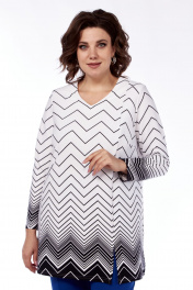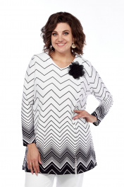 Женский трикотажный блузон оверсайз длиной ниже середины бедер с одношовным длинным рукавом с декоративными разрезами по низу блузы – слева два и с права один. Ткань с контрастным геометрическим принтом по всему изделию, приятная к телу и мягкая, трикотажная, тянется. Вырез горловины «V-образный» по передней половинке и округлый по спинке. Подплечники из тонкого мягкого поролона стройнят образ. По передней половинке – нагрудные вытачки. Декором служит отделочная брошь (брошь в комплекте может отличаться от фото). Блузон-джемпер станет незаменим в вашем гардеробе в осеннее и весеннее межсезонье, когда на улице еще не холодно, но уже не жарко. Отличное сочетание с любыми брюками и юбками. Модель с черным принтом на белой трикотажной ткани представлена в ограниченной серии, так же представлена с притом мягких серых тонов с артикулом 4048 На снимках и на видео наша фотомодель ростом 173 см., параметрами фигуры для размера 52-54. Платье на фотомодели – 54 размера. Вы легко определите свой размер, сделав замеры вашей фигуры и сравнив их с теми данными по замерам, которые мы специально делаем для наших изделий. Если есть сомнения по выбору размера, пишите нам ваши параметры фигуры, и мы подберем именно ваш размер. Фактические замеры изделий (в готовом виде), в которых: ОГ – обхват груди; ОТ – обхват талии; ОБ – обхват бедер; ДИ – длина изделий (по спинке от выреза горловины по центру); ДР – длина рукава (от плечевого шва, либо от выреза горловины до края рукава при спущенном рукаве); ШП – ширина в плечах (от швов втачивания рукавов); ОР – обхват руки (в предплечье в самом широком месте); ОЗ – обхват в запястье. Фотомодель на фотографиях ростом 173 сантиметра, с обхватом груди – 103, талии – 79, бедер – 115 см. Размер – 52-54. Размер 50 ОГ – 104; ОТ – 106; ОБ – 116; ДИ – 79; ДР – 61; ШП – 40; ОР – 36; ОЗ –19 Размер 52 ОГ – 108; ОТ – 110; ОБ – 120; ДИ – 80; ДР – 61; ШП – 40; ОР – 36; ОЗ –19 Размер 54 ОГ – 112; ОТ – 114; ОБ – 124; ДИ – 80; ДР – 61; ШП – 41; ОР – 36; ОЗ –19 Размер 56 ОГ – 116; ОТ – 118; ОБ – 128; ДИ – 81; ДР – 61; ШП – 42; ОР – 37; ОЗ –20 Размер 58 ОГ – 120; ОТ – 122; ОБ – 132; ДИ – 81; ДР – 61; ШП – 43; ОР – 38; ОЗ –20 Размер 60 ОГ – 124; ОТ – 126; ОБ – 136; ДИ – 81; ДР – 61; ШП – 44; ОР – 40; ОЗ –22 Размер 62 ОГ – 128; ОТ – 130; ОБ – 140; ДИ – 82; ДР – 61; ШП – 45; ОР – 42; ОЗ –22