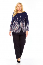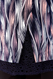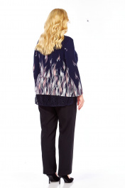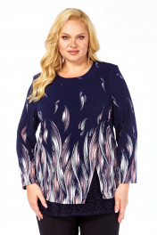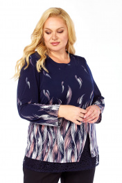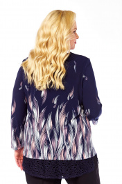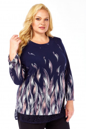 Эта модель разработана для женщин, которые ценят стиль и удобство. Уникальный дизайн и премиум-материалы Блуза выполнена из высококачественного итальянского трикотажа "масло" (50% вискоза, 50% полиэстер) — эластичной, мягкой и приятной к телу ткани, которая не мнётся и легко стирается. Насыщенный тёмно-синий фон украшен ярким акварельным принтом с плавными вертикальными мазками, выполненными в нежно-розовых, персиковых и молочных оттенках. Этот принт создаёт визуально стройнящий эффект и придаёт образу свежесть. Идеальный крой для идеальной посадки Модель имеет свободный крой оверсайз, который идеально подходит для размеров Plus Size (от 54 до 64), обеспечивая свободу движений и скрывая недостатки фигуры. Дополнительный комфорт обеспечивают втачные рукава длиной 3/4 и аккуратно обработанный круглый вырез горловины. Изысканные детали, которые покоряют Особая изюминка этой блузы — её многослойный низ. Он украшен широкой полосой тёмно-синего кружева с ажурным узором, напоминающим ришелье. Слегка асимметричный крой с небольшими разрезами по бокам приоткрывает кружевной слой, создавая воздушный и женственный силуэт. Мягкие подплечники из тонкого поролона приподнимают линию плеч и стройнят фигуру. Эта блуза-туника станет незаменимой частью вашего гардероба, добавляя в него элегантность и уверенность.