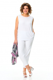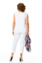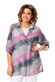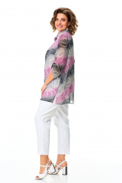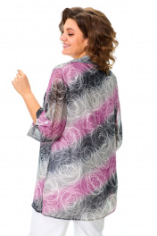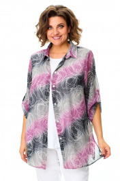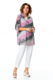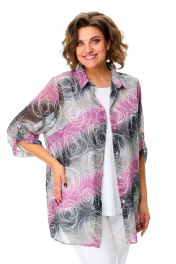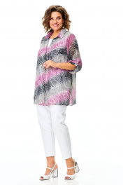 Комплект-двойка нарядный женский – блуза из шифона и майка трикотажная. Модель свободного силуэта. Рукава втачные с подплечниками, ¾, с патой – с отворотом и хлястиком с пуговицей, что позволяет регулировать длину рукавов. Блузка имеет классический отложной рубашечный воротник. С нагрудными вытачками. Застежка на петли и на пуговицы. Линия низа прямая, боковые швы заканчиваются разрезами. Ткань – легкий воздушный дышащий шифон, просвечивается, с принтом в красивые разноцветные хаотичные линии. В комплект входит трикотажная майка-топ с широкими нерегулируемыми бретелями без рукавов белого цвета с нагрудными вытачками, которая выполняет роль легкой дышащей подкладки, но майку, как и блузу можно одевать отдельно. Блузу из комплекта можно смело одевать без майки с красивым нижним бельем в теплые весенние и летние дни. Ткань блузона не тянется, ткань майки эластичная, отлично тянется. Сама майка свободная, как и воздушный яркий блузон. Сьемки проводились в сочетании в образе с нашими брюками Abbi белого цвета. Для более полного представления о модели комплекта посмотрите так же видеоролик к этой модели и к моделям 5020, 5021, 5022 и 5023. Все эти нарядные комплекты – это нарядная женская одежда больших размеров. Мы задумали эту модель, чтобы любая женщина с пышными формами могла сгладить особенности своей фигуры, надев эти блузоны с майкой. Каждая партия нашей одежды для женщин индивидуальна и выпускается незначительными, ограниченными партиями, поэтому найти точно такую же блузу или платье на многомиллионном просторе будет сложно. Данной модели мы выпустили всего несколько размерных рядов. Средняя длина блуз в размерах по спинке около 82 сантиметров. Длина рукавчиков по пате около 36 сантиметров, с расстегнутой патой – 45 см. Точные замеры в каждом размере блузы и маек прилагаются к описанию ниже. Фотомодель на фотографиях ростом 173 сантиметра, с обхватом груди – 103, талии – 79, бедер – 115. Размер – 54. ВАЖНАЯ информация – данная модель «большемерит». Ссылка на видеоролик с комплектом на нашем канале: https://www.youtube.com/watch?v=8aOna4eIPBY https://www.youtube.com/@AbbiClothes Фактические замеры изделий (в готовом виде), в которых: ОГ – обхват груди; ОТ – обхват талии; ОБ – обхват бедер; ДИ – длина изделий (по спинке); ДР – длина рукава (от втачного шва у плеча до края рукавчика при расстегнутой пате); ШП – ширина по плечам. Рост фотомодели – 173 см, размер фотомодели – 54. Размер 54 Блуза ОГ – 108-120; ОТ – 120; ОБ – 124; ДИ – 81; ДР – 44; ШП - 43 Майка-топ ОГ – 108-116; ОТ – 118; ОБ – 126; ДИ – 64 Размер 56 Блуза ОГ – 112-124; ОТ – 124; ОБ – 128; ДИ – 82; ДР – 44; ШП - 43 Майка-топ ОГ – 112-120; ОТ – 122; ОБ – 130; ДИ – 64 Размер 58 Блуза ОГ – 116-128; ОТ – 128; ОБ – 132; ДИ – 83; ДР – 45; ШП - 44 Майка-топ ОГ – 116-124; ОТ – 126; ОБ – 134; ДИ – 65 Размер 60 Блуза ОГ – 120-132; ОТ – 132; ОБ – 136; ДИ – 83; ДР – 45; ШП - 44 Майка-топ ОГ – 120-128; ОТ – 130; ОБ – 138; ДИ – 66 Размер 62 Блуза ОГ – 124-136; ОТ – 136; ОБ – 140; ДИ – 83; ДР – 45; ШП - 44 Майка-топ ОГ – 124-132; ОТ – 134; ОБ – 142; ДИ – 66 Размер 64 Блуза ОГ – 128-140; ОТ – 140; ОБ – 144; ДИ – 84; ДР – 45; ШП - 45 Майка-топ ОГ – 128-136; ОТ – 138; ОБ – 146; ДИ – 67 "