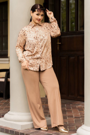 Блузка женская полуприлегающего силуэта с центральной бортовой с застёжкой на петли и пуговицы, воротник стояче - отложной , полочка с накладными нагрудными карманами, с вытачками, спинка с отрезной кокеткой.Низ фигурный, рукава втачные одношовные , на притачной манжете застёгивающимися на петли и пуговицы.