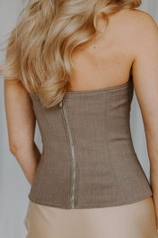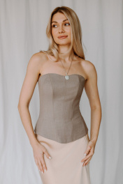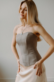 Женский топ корсетного типа — это стильная одежда для создания эффектного образа. Косточки в швах помогают сохранить форму и поддерживать бюст, делая посадку максимально комфортной. Плотно обтягивать фигуру помогает застежка-молния по спинке, что подчеркнет талию. Черный цвет добавляет изысканности, а эксклюзивный крой подчеркивает индивидуальность обладательницы. Топ корсет можно носить как самостоятельную вещь или сочетать с пиджаком, юбкой, брюками, рубашкой. Чашечка выполнена так, чтобы обеспечить комфорт даже при длительной носке. Корсетный топ выполнен в черном цвете, который легко комбинируется с разными стилями одежды. Эксклюзивный дизайн подчеркнет вашу индивидуальность, а плотная посадка придаст сексуальности любому наряду. Такой женский топ станет отличным выбором для создания праздничного или вечернего образа. Данная модель топа корсета подойдет тем, кто ценит свободу движений и стильные решения в гардеробе.