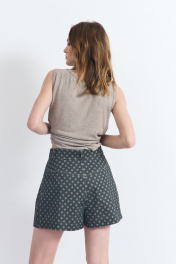 Джемпер женский из трикотажного полотна, полуприлегающего силуэта. Джемпер присборен по боковым швам эластичной тесьмой. Горловина переда и спинки круглая – окантована. Пройма окантована.