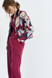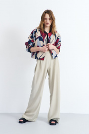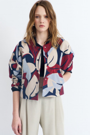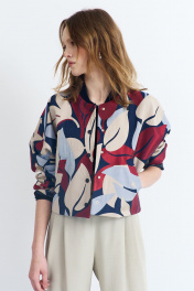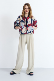 Куртка женская, из костюмно-плательной ткани, короткая, прямого силуэта, с центральной бортовой застежкой на пять кнопок. Перед цекльновыкроен с передними частями рукавов, с прорезными карманами с листочкой с втачными концами. Спинка цельновыкроенная с локтевыми частями рукавов. Рукава цельновыкроенные, одношовные, длинные. Воротник-стойка – из трикотажного полотна. Куртка на подкладке.