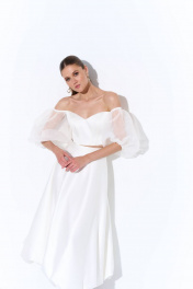 Корсет укороченный из атласа с объемными рукавами AG Green L0823-3 молочный