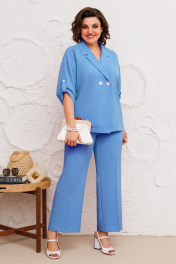 Стильный женский комплект, состоит из жакета прямого силуэта и брюк. Жакет выполнен из костюмной ткани с добавлением льна, хлопка и вискозы, со спущенной проймой, что придает свободу движению и комфорта при носке. Жакет модного дизайна, двубортный с одним рядом крупных пуговиц, что придает модели особый шарм. Рукав 3/4, с застежкой на пату и декорирован пуговицей меньшего размера, при желании рукав можно удлинить, расстегнув пуговицу. Брюки прямые, выполнен из костюмной ткани с добавлением льна, хлопка и вискозы, на поясе с резинкой и застежкой на пуговицу и молнию. Модель костюма стильная и практичная, отлично подойдет для ежедневной носки.