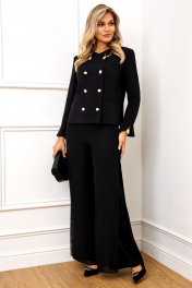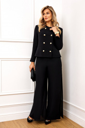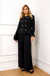 Стильный и супер эффектный костюм, состоит из жакета и брюк. Жакет полуприлегающего силуэта, выполнен из премиальной ткани Зара с добавлением вискозы. Жакет двубортный, по переду с застежкой на металлические золотые пуговицы и V-образным вырезом горловины, что придает модели особый шарм и нарядность! Жакет полностью на премиальной подкладке GRAND. Рукав жакета втачной, полной длины, с небольшим разрезом по низу! Брюки — это отдельный вид искусства! Брюки прямого силуэта, выполнены из ткани Зара с добавлением вискозы, верхний слой брюк выполнен из летящего шифона, что придает модели особый стиль и нарядность. Брюки сбоку с застежкой на потайную молнию и пуговицы. Модель идеально украсит праздничный образ, но в тоже время прекрасно подойдет для ежедневной носки! В данном костюме вы будете ЛЕДИ на МИЛЛИОН!