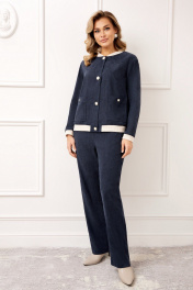 Стильный и современный комплект, состоит из бомбера и брюк. Бомбер полуприлегающего силуэта, выполнен из премиальной ткани Вельвет с добавлением вискозы. Бомбер без подкладки, по переду с застежкой на металлические пуговицы и накладными карманами с застежкой на пуговицу. Стойка горловины бомбера и манжета рукава выполнены из мягкого трикотажного довяза, что придет модели особый стиль и комфорт при носке. Рукав втачной, полной длины. Брюки прямые, слегка зауженные к низу, выполнены из премиальной ткани Вельвет с добавлением вискозы. Пояс брюк полностью на резинке, в боковых швах функциональные карманы.