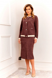 Стильный и современный комплект, состоит из бомбера и юбки. Бомбер полуприлегающего силуэта, выполнен из премиальной ткани Вельвет с добавлением вискозы. Бомбер без подкладки, по переду с застежкой на металлические пуговицы и накладными карманами с застежкой на пуговицу. Стойка горловины бомбера и манжета рукава выполнены из мягкого трикотажного довяза, что придет модели особый стиль и комфорт при носке. Рукав втачной, полной длины. Юбка прямая, слегка зауженная к низу, выполнены из премиальной ткани Вельвет с добавлением вискозы. Пояс юбки по спинке с резинкой, спереди с застежкой на пуговицу и молнию. Спереди у юбки функциональные карманы, по низу переда юбка с разрезом. Модель стильная и удобная, прекрасно подходит для ежедневной носки.