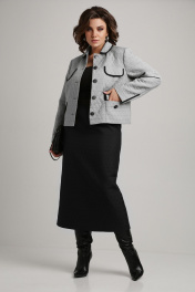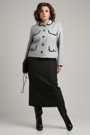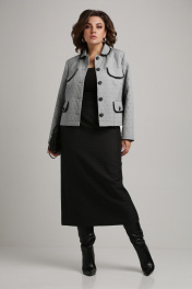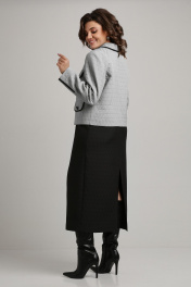 Деловой женский костюм из текстильных жаккардовых тканей Aira Style 24-18 серо-черный