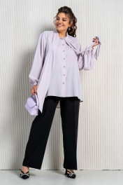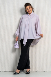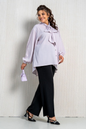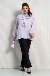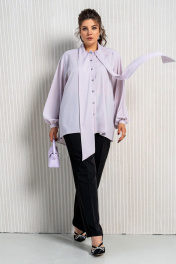 Фиолетовая блуза и брюки в комплект с воротником аскот Aira Style 24-212 черно-лиловый