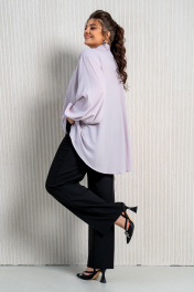 Универсальный комплект состоит из блузки и брюк. Блузка свободного силуэта с воротником аскот (воротник-бант) станет ультрамодным дополнением Вашего гардероба, а пышные рукава зачаровывают своей легкостью и воздушность силуэта. По переду центральная застежка на петли и пуговицы и спущенной линией плеча. Рукав втачной, одношовный с манжетой по низу. По спинке кокетка. Брюки прямого силуэта с заутюженными стрелками и притачным поясом. Для максимально комфортной посадки по бокам пояса вставлена эластичная резинка. Застёжка на молнию с гульфиком и пуговица по поясу. По переду в боковых швах карманы. Задние половинки брюк с талиевыми вытачками.