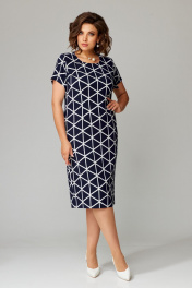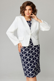 Платье и жакет с приталенным силуэтом и перьями Aira Style 24-32 сине-молочный