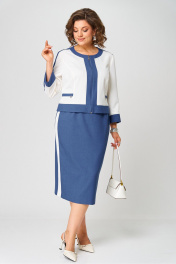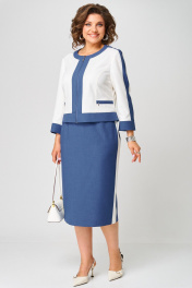 Оригинальный костюм, станет отличным дополнением к Вашему осеннему гардеробу. Данный комплект станет отличным вариантом для повседневных образов, а также для работы в офисе. Костюм двух-предметный, состоящий из жакета и юбки. Жакет с декоративной контрастной отделкой, прямого силуэта с центральной застёжкой на молнию, горловина округлой формы. По переду жакета рельефы, декоративные листочки с имитацией кармана с застежкой. Спинка жакета со средним швом и рельефами. Рукав втачной, с совставкой из контрастной ткани. Жакет без подкладки. Юбка классическая на подкладке, слегка зауженная к низу. В боковых швах контрастные свтавки. среднем шве заднего полотнища застежка потайная молния и разрез. Для максимально комфортной посадки по бокам пояса вставлена эластичная резинка.
