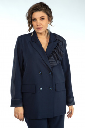 Синий жакет свободного силуэта с оборкой и карманами Alani Collection 2017 синий