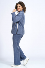 Жакет полуприлегающего силуэта, на подкладке, с застёжкой на петли и пуговицы. Декорированный отделочной тесьмой по левому боковому и накладному карману, термоаппликацией и нашивкой по карману и среднему шву спинки. Перед с рельефными швами, накладными карманами. Спинка со средним швом и рельефными швами. Рукава втачные, одношовные, длинные. Вороник пиджачного типа. Брюки длинные, типа «клёш» прилегающего силуэта по бёдрам и от линии колена идут на расширение, на притачном поясе по боковым на резинке, с застежкой типа «гульфик» на тесьму-молнию и по краю пояса на петлю и пуговицу. Задние части с талевыми выточками.