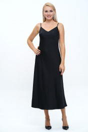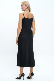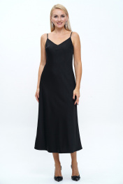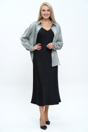 Блузон женский свободного, прямого силуэта, с застёжкой по цельнокроеной планке на петли и пуговицы, со спущенной линией плеча, с фигурной линией низа и разрезами.Спинка с притачной кокеткой и мягкой встречной складкой.Рукава втачные, одношовные, длинные, понизу с разрезом, двумя мягкими складками и притачными манжетами на две пели и пуговицы. Воротник стояче отложной на отрезной стойке на петлю и пуговицу. Платье женское полуприлегающего силуэта, на узких бретелях с фиксируемой длиной.Перед с нагрудными выточками, с фигурным верхнем краем.