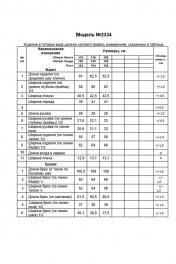 Жакет полуприлегающего силуэта, с двухбортной застёжкой на петли, пугови и с внутренней застёжкой на петлю, пуговицу. Перед с отложными лацканами, с рельефными швами. Спинка со средним швом и рельефными швами. Рукава втачные, одношовные, короткие. Воротник небольшая шалька, входящая в лацкан. Брюки полуприлегающие по бёдрам и талии, книзу расширенные, на притачном поясе (Р52-56 по боковым пояса на резинке), застёжка типа «гульфик» по среднему шву переда на молнию и петлю, пуговицу по поясу. Передние части с мягкой застроченной складкой от линии талии и чуть ниже линии бёдер. Задние части с талевыми выточками.
